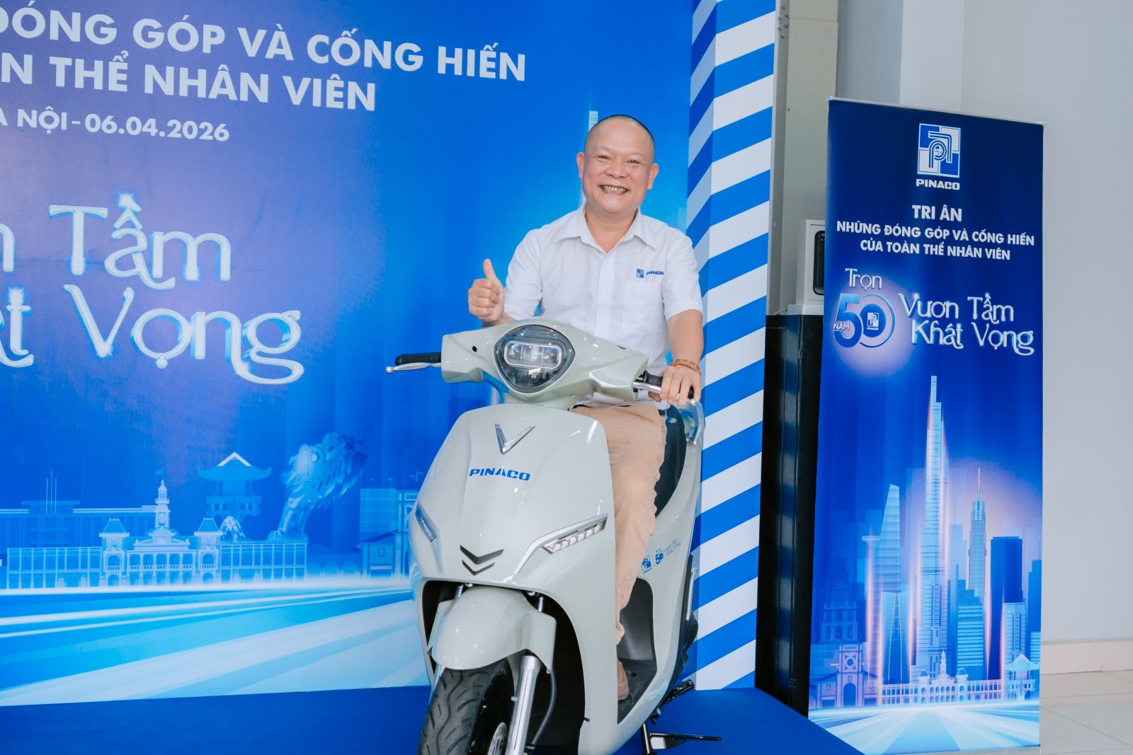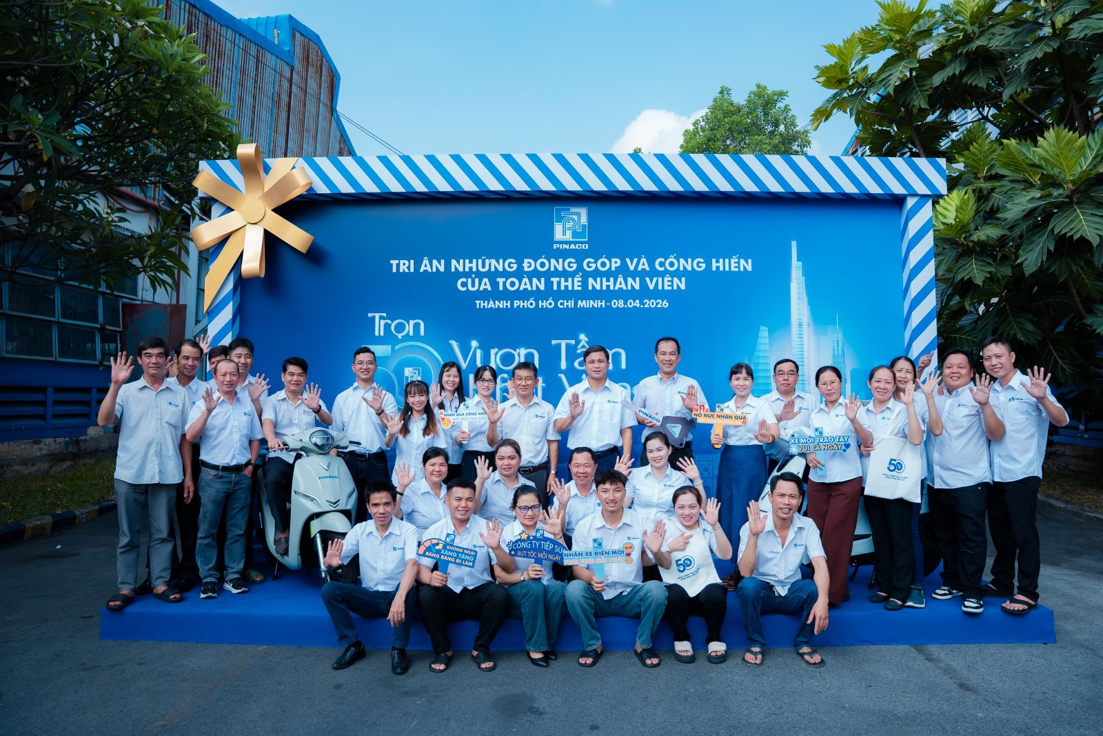 Hướng tới cột mốc vàng - kỷ niệm 50 năm thành lập PINACO ngày 19/4/2026, Công ty trân trọng trao tặng hơn 1.000 xe máy điện VinFast cho cán bộ, công nhân viên có thâm niên từ 2 năm trở lên.