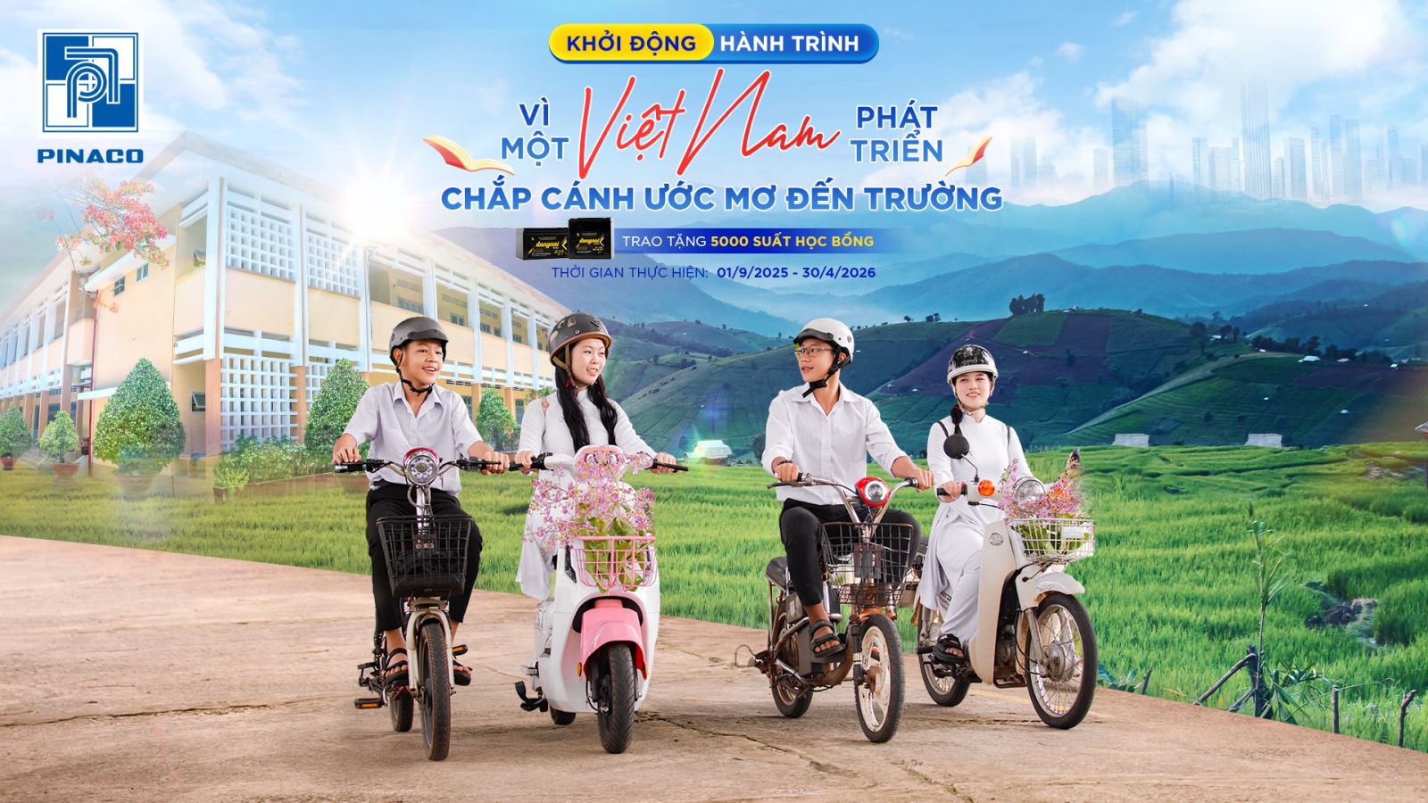 Trên hành trình gieo mầm tri thức, mỗi sản phẩm Ắc quy Đồng Nai e.bike được bán ra sẽ đóng góp 10.000 đồng vào Quỹ học bổng PINACO - như một cách để mỗi chuyến đi hôm nay tiếp sức cho những ước mơ ngày mai.