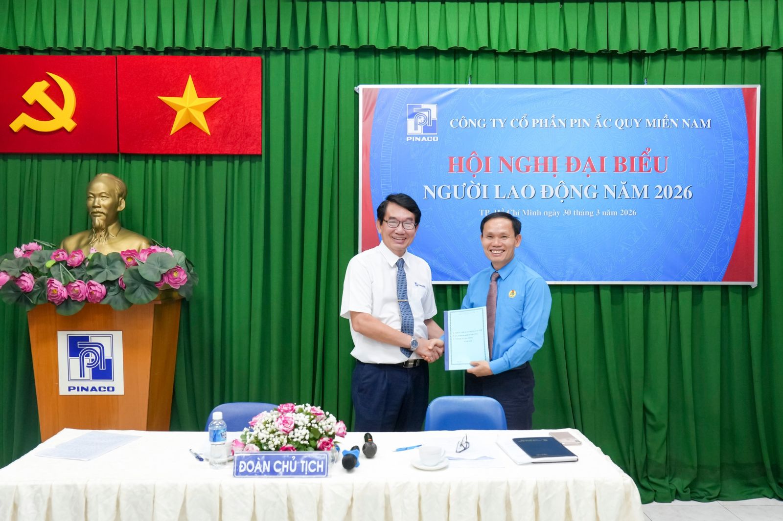 Ngày 30/3, tại TP. Hồ Chí Minh, Công ty CP Pin Ắc quy Miền Nam (Pinaco) tổ chức Hội nghị đại biểu người lao động năm 2026. Tham dự hội nghị có ông Nguyễn Hữu Tú, Phó Bí thư Đảng ủy, Thành viên HĐTV, Tổng Giám đốc Tập đoàn Hóa chất Việt Nam (Vinachem); Ông Chu Văn Giáp, Thành viên Vinachem; ông Lê Hoàng, Phó Tổng Giám đốc Vinachem, Chủ tịch HĐQT Công ty; ông Nguyễn Huy Thông, Chủ tịch Công đoàn Công nghiệp Hóa chất Việt Nam.
