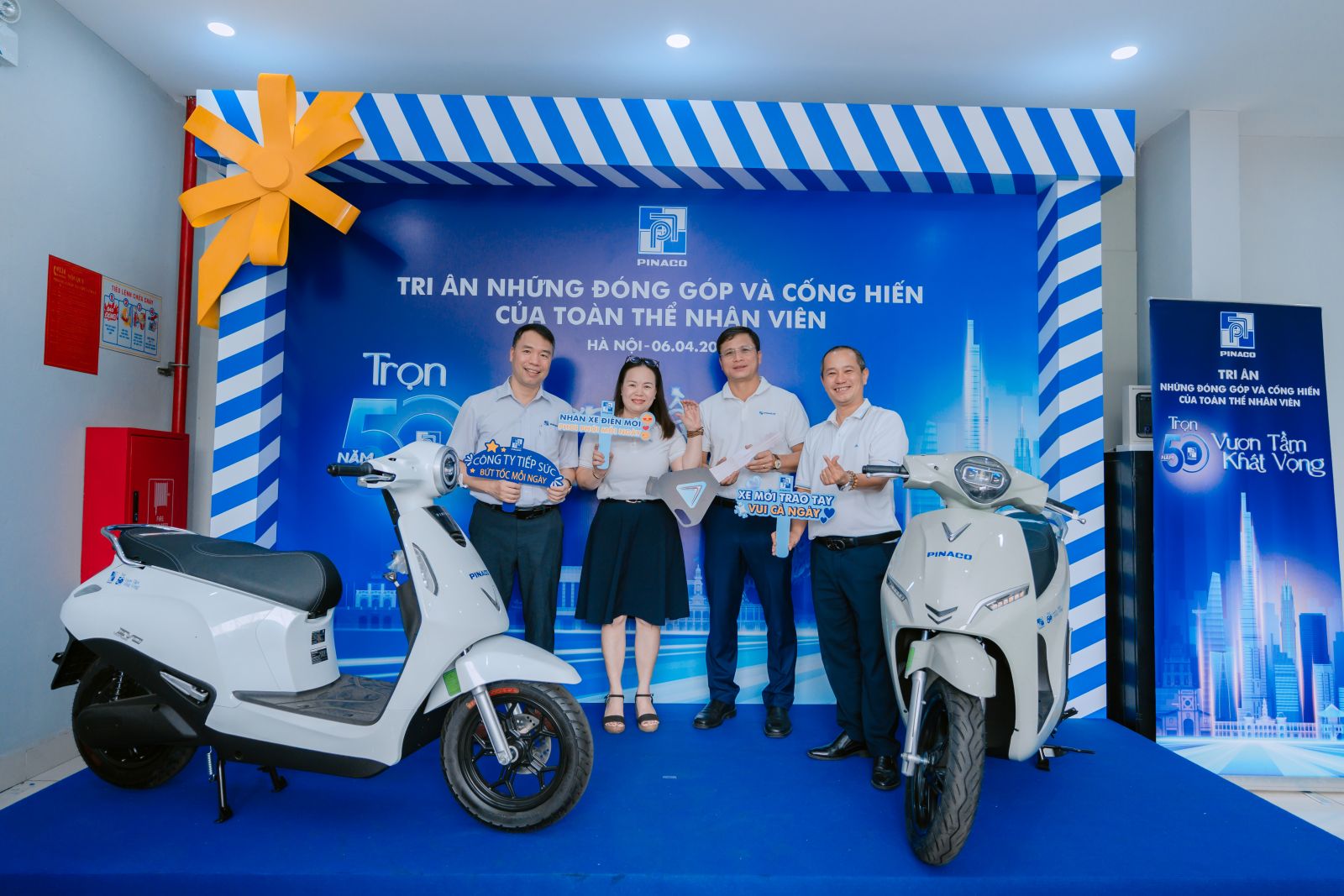 Hướng tới cột mốc vàng - kỷ niệm 50 năm thành lập PINACO ngày 19/4/2026, Công ty trân trọng trao tặng hơn 1.000 xe máy điện VinFast cho cán bộ, công nhân viên có thâm niên từ 2 năm trở lên.